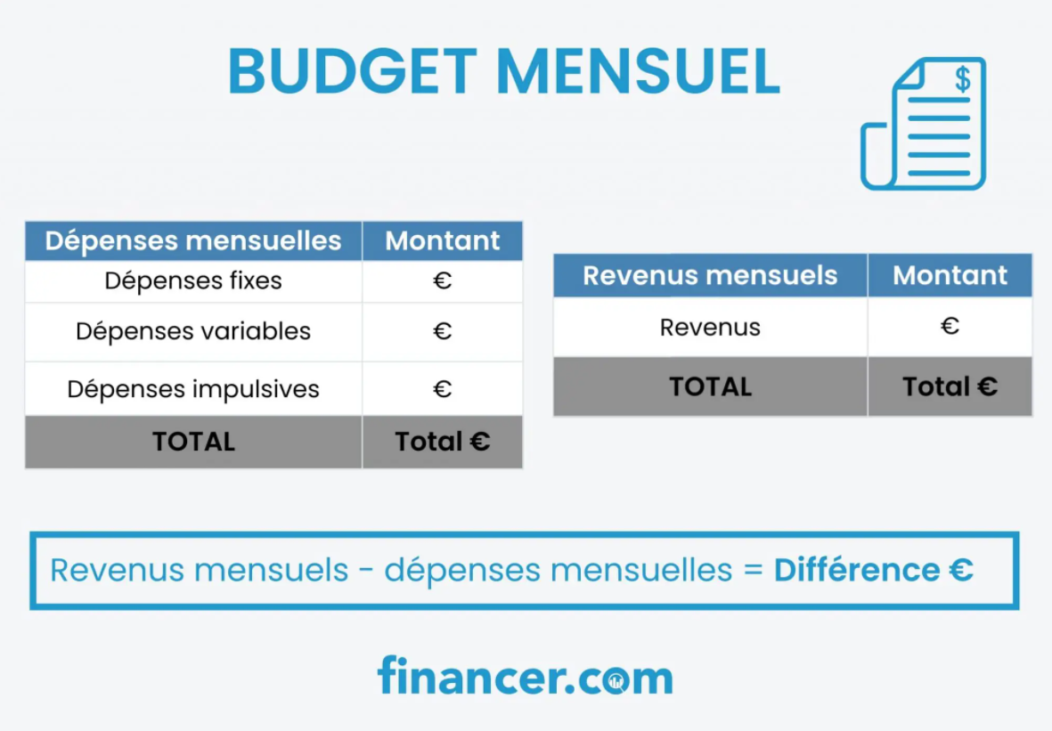 Comment analyser le budget mensuel ? Source : https://financer.com/fr/guides/economiser-petit-salaire/