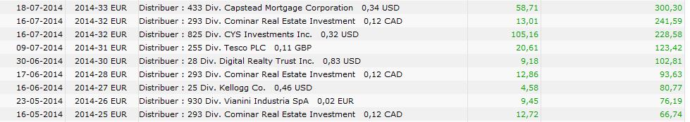 Je suis à bientôt 700 € / mois de dividende en moyenne, chaque mois ça augmente c’est vraiment génial comme source de revenus.