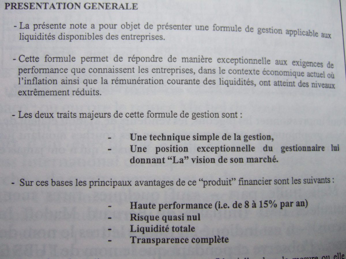 Le mieux est à venir : le produit est présenté comme étant à haute performance avec un risque quasi nul, une liquidité totale et une transparence complète.