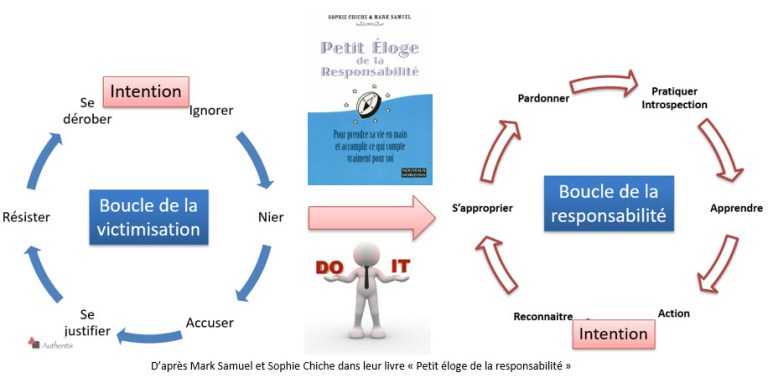 Dans le couple, on dit souvent qu’il ne faut pas essayer de changer l’autre et c’est très vrai : le changement vient de soi, pas d’une injonction extérieure qui aurait même tendance à renforcer le comportement que l’on souhaite voir disparaitre. Il faut accepter la responsabilité du changement ou du non-changement et celle-ci ne peut être que personnelle.