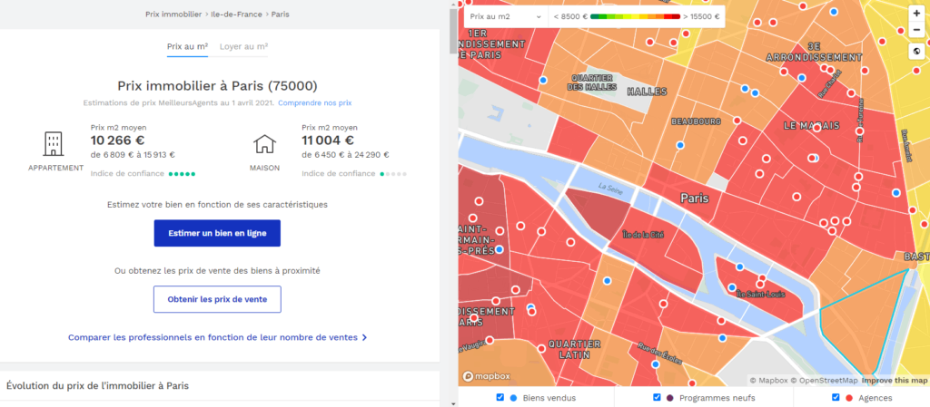 Carte des prix immobilier au m² à Paris. Source : https://www.meilleursagents.com/prix-immobilier/paris-75000/