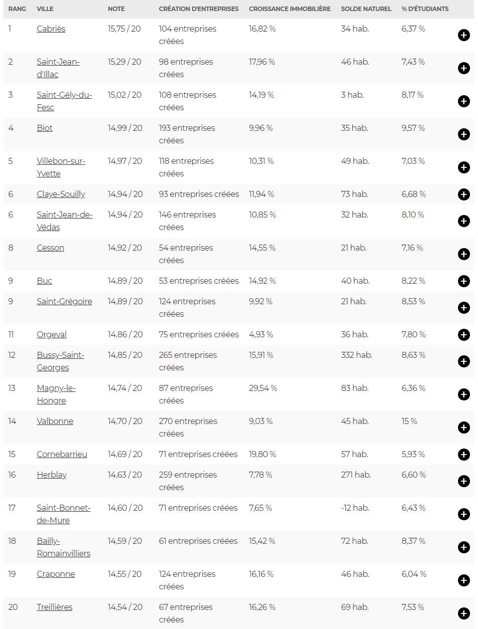Les villes les plus dynamiques de France. Source : https://www.linternaute.com/ville/c-villes-les-plus-dynamiques